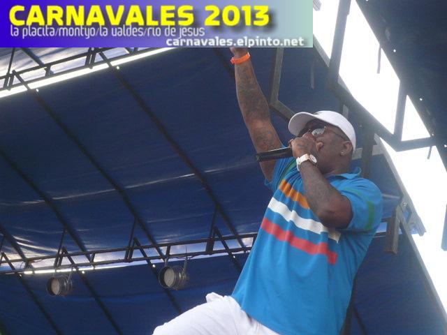 JR Ranks en la presentacion del sabado de carnaval junto a una pareja de bailarinas en el show de plena en Santiago