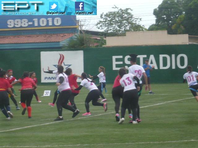 Se realizo el pasado domingo en un ambiente lleno de seguidores del flag, un deporte que esta creciendo entre los jovenes veraguenses. Se enfrentaron los equipos de Wizards (Chitre), Gladiators, Advengers y Black Windows en la femenina y en la masculina Soldiers, Deseptions, Mustangs (Chitre) y Panzas. Entre los ganadores en la femenina está Gladiators y la masculina Mustangs la mejor jugadora femenina Arlene hernandez de Gladiators y Mejor jugador masculino Bolo Rodriguez de Mustangs. ver fotos